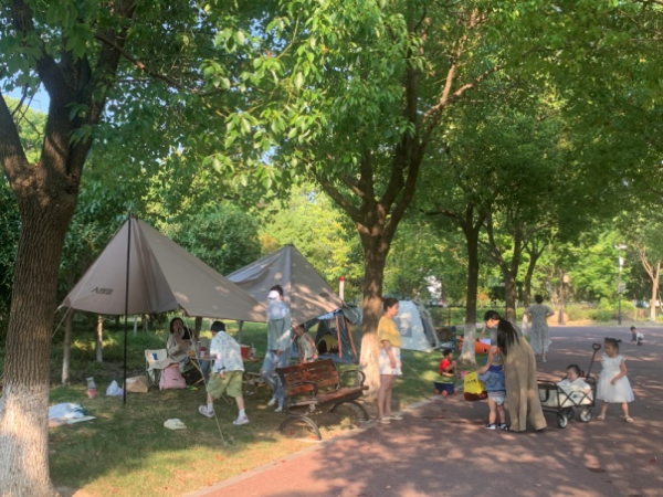 园内游人如织,有的在遛娃、戏水、拍照,有的在群艺馆观摩字画、参观非遗展览,有的在月亮广场欣赏惠民演出,还有人在星空下拉起幕布观看电影……优美宜人的自然景色与丰富多彩的文化景观为市民带来了绝佳的出游体验。