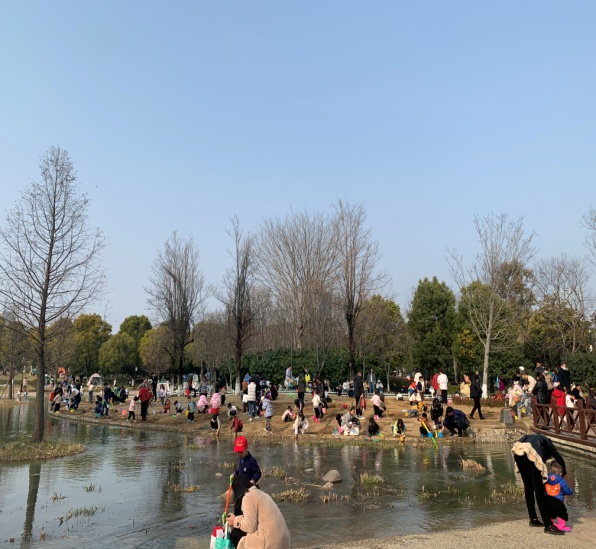 梅花怒放、玉兰含苞、杨柳吐绿、迎春绽放,无限春光引来游人如织,在公园里处处洋溢着欢声笑语,春日美景让游客流连忘返。儿童戏水区挖沙、戏水、露营、野餐等亲子游戏,处处呈现一派欢乐和睦的景象。
